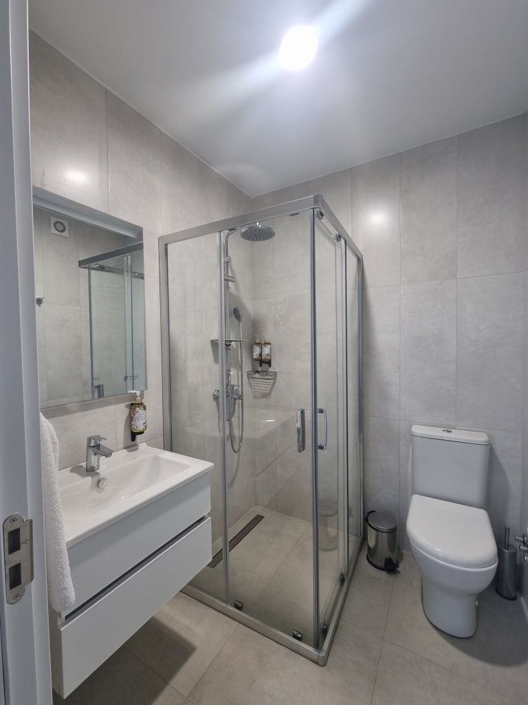 - a bathroom with a modern shower;